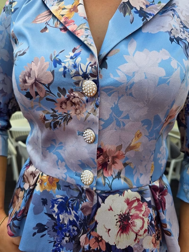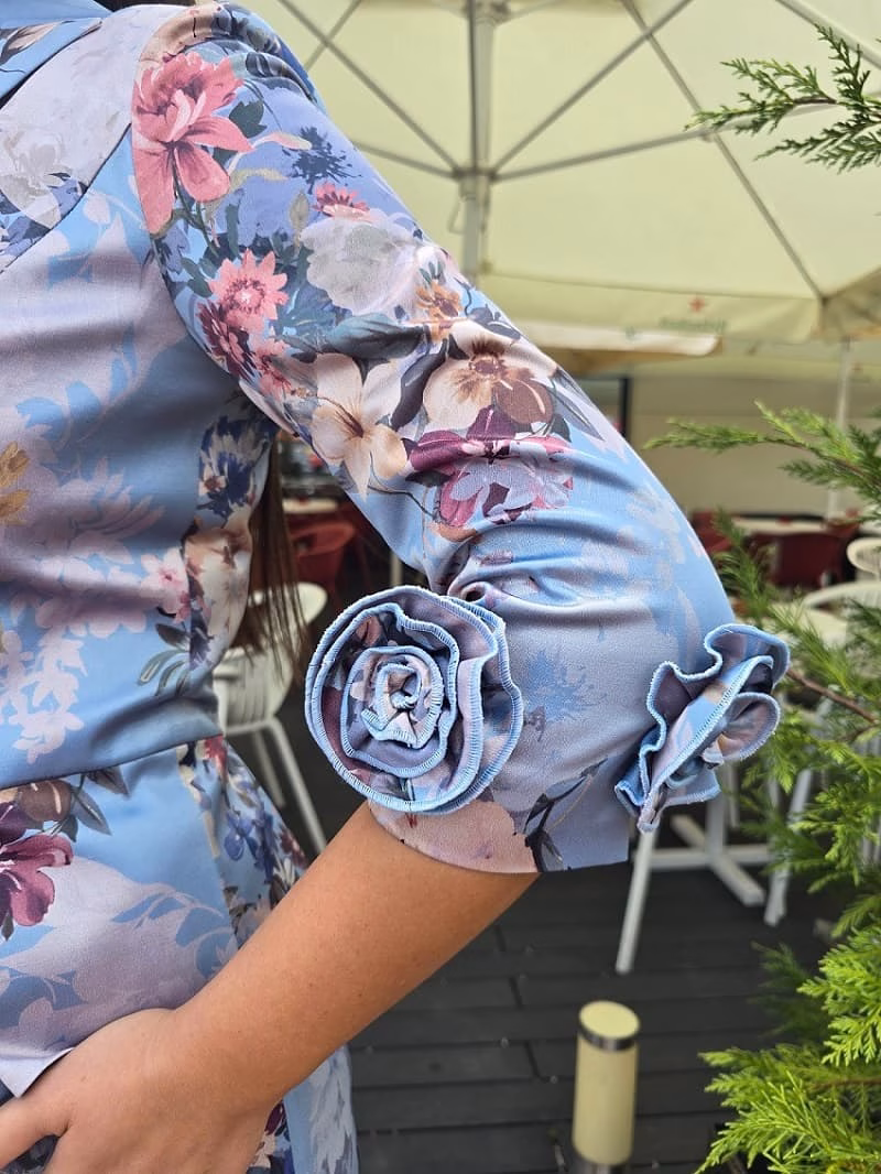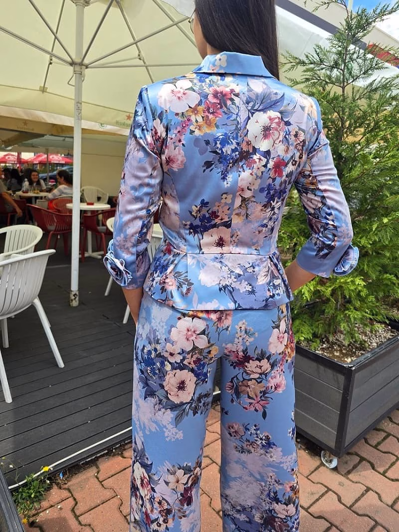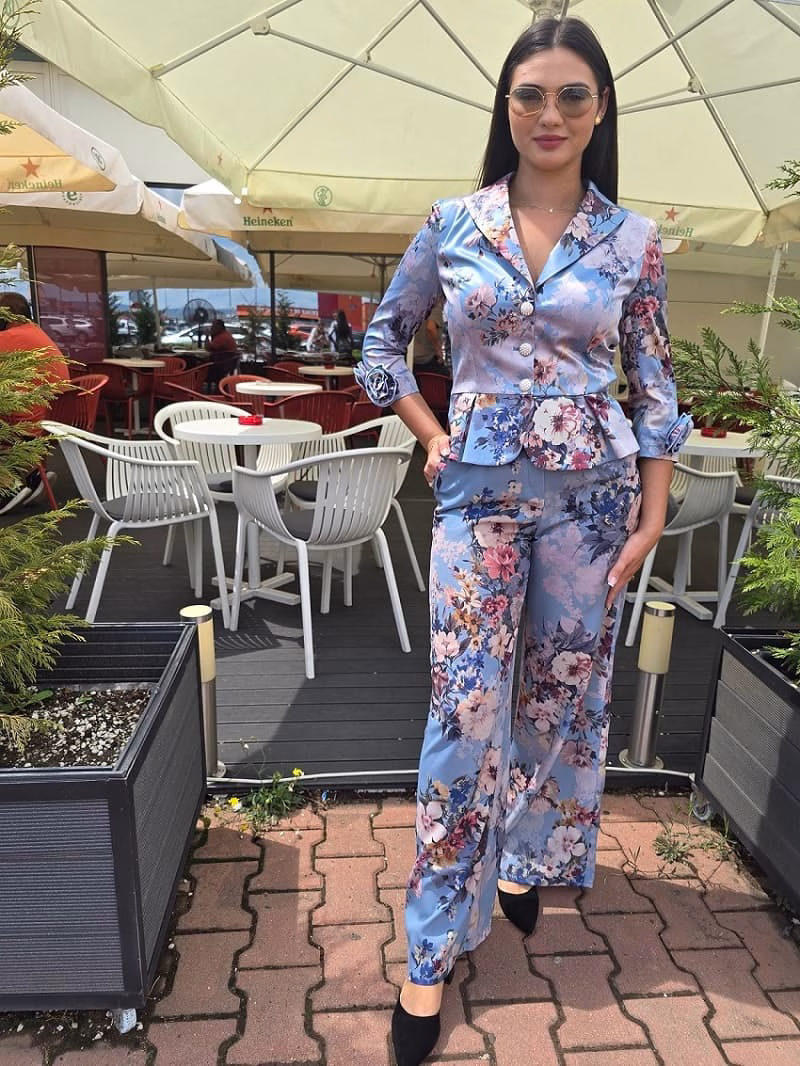 Compleu Dama Modern – Bleu Pastelat, Imprimeu Floral, 2 Piese
