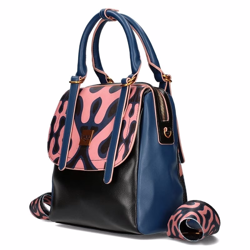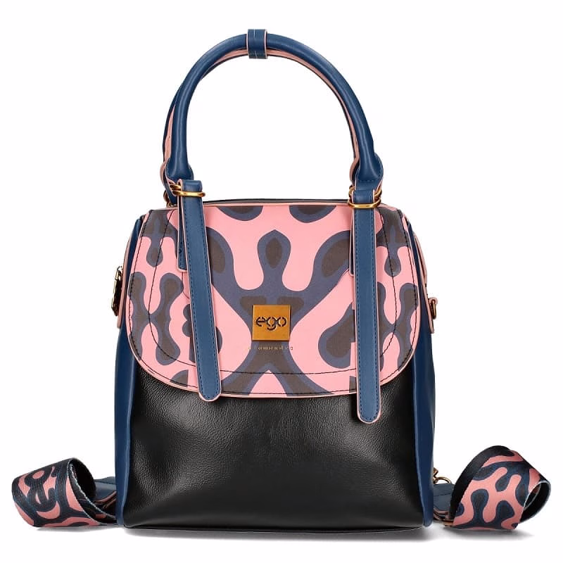 Designul este modern și artistic , cu un imprimeu abstract în nuanțe de roz pudră, negru si bleumarin