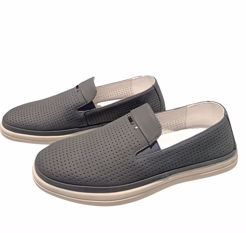 Pantofi bărbătești slip-on din piele naturală gri – comozi, ușori, ventilați, ideali pentru ținute casual sau smart-casual.