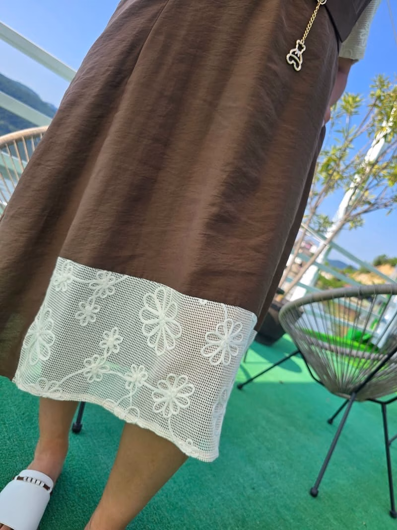 Garnitura brodata in culoarea Ivoire, in partea din fața a rochiei si pe maneci.