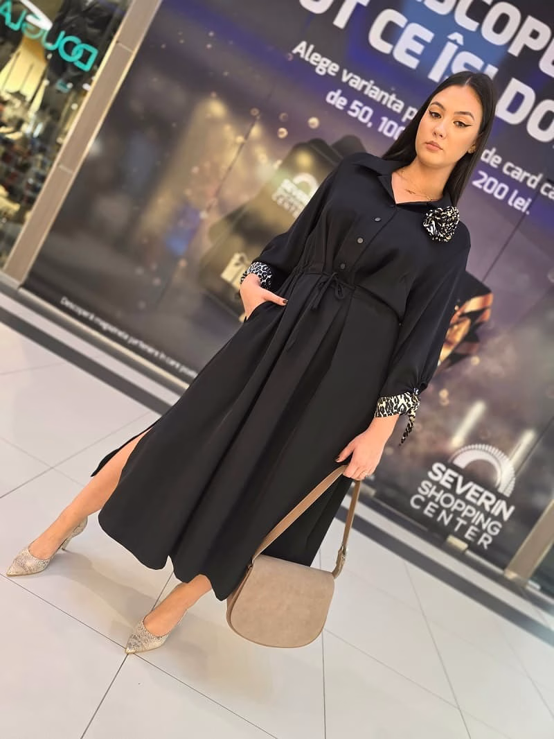 Inchidere frontală cu nasturi ,ceea ce o face practică și ușor de purtat. Această rochie poate fi purtata la birou,la un eveniment de zi sau casual- elegant.